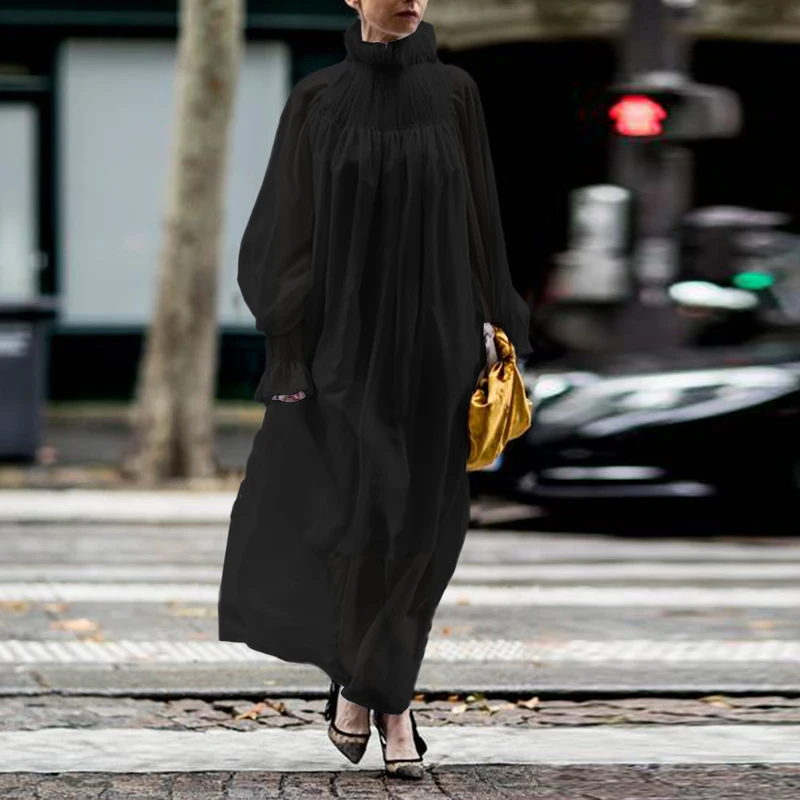 Осеннее платье 2021 VONDA повседневные однотонные вечерние макси платья с длинным рукавом свободный элегантный пляжный сарафан свободные платья