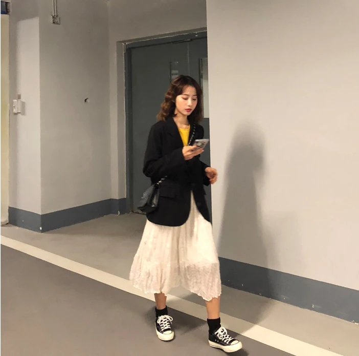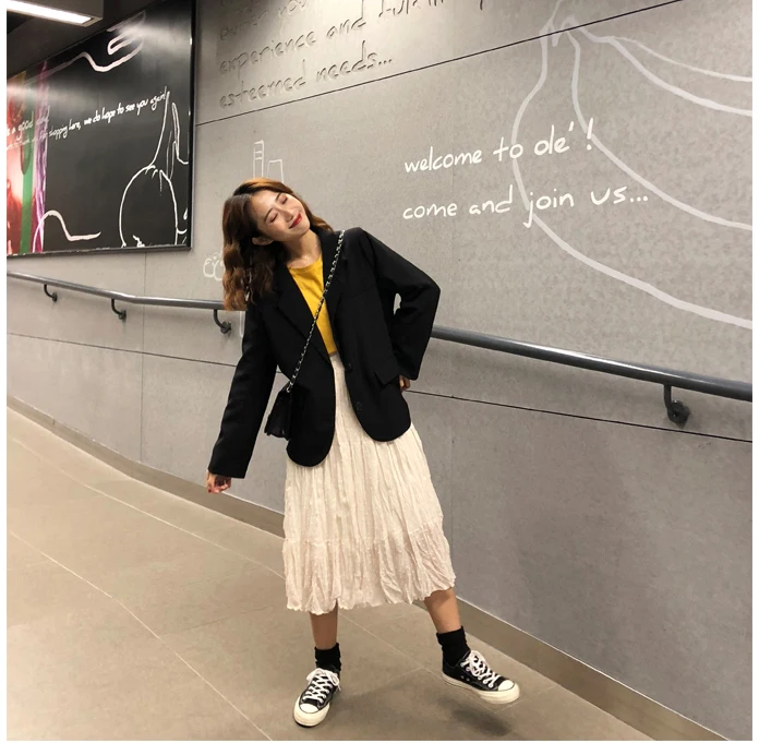 Осень 2020, черные женские блейзеры с длинным рукавом, однобортные женские пальто с карманами, свободные топы, верхняя одежда C08604K