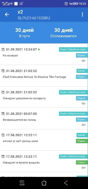 Страна: RU Доставка: Cainiao Super Economy 06.08.2021