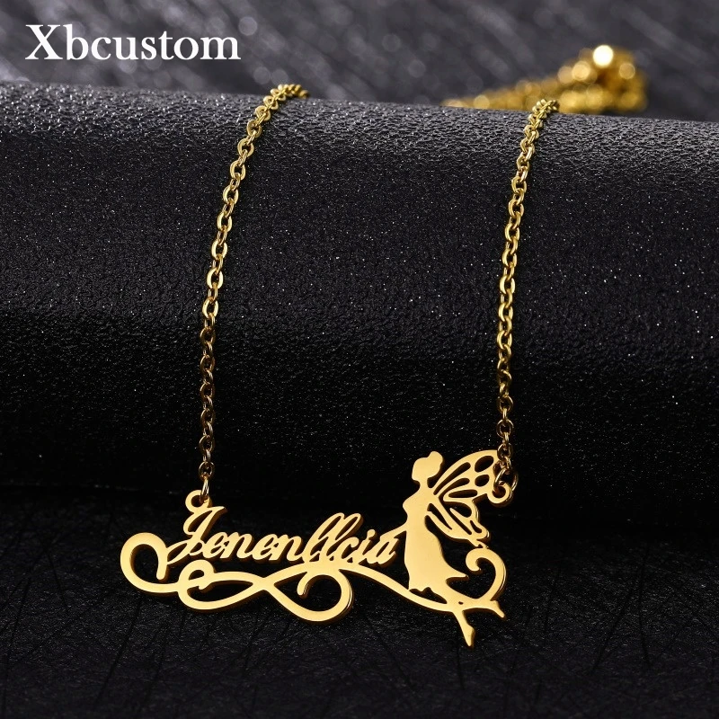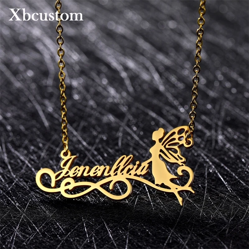 Ожерелье, персонализированная цепочка из нержавеющей стали, подвеска в виде сказочного ангела, женское ожерелье с крыльями, романтические подарки