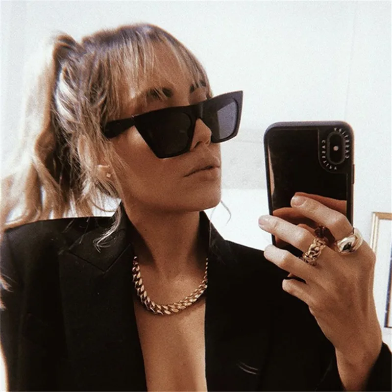 Новые трендовые Квадратные Солнцезащитные очки, индивидуальные красные солнцезащитные очки в ретро стиле, модные солнцезащитные очки кошачий глаз с перекрестными линзами