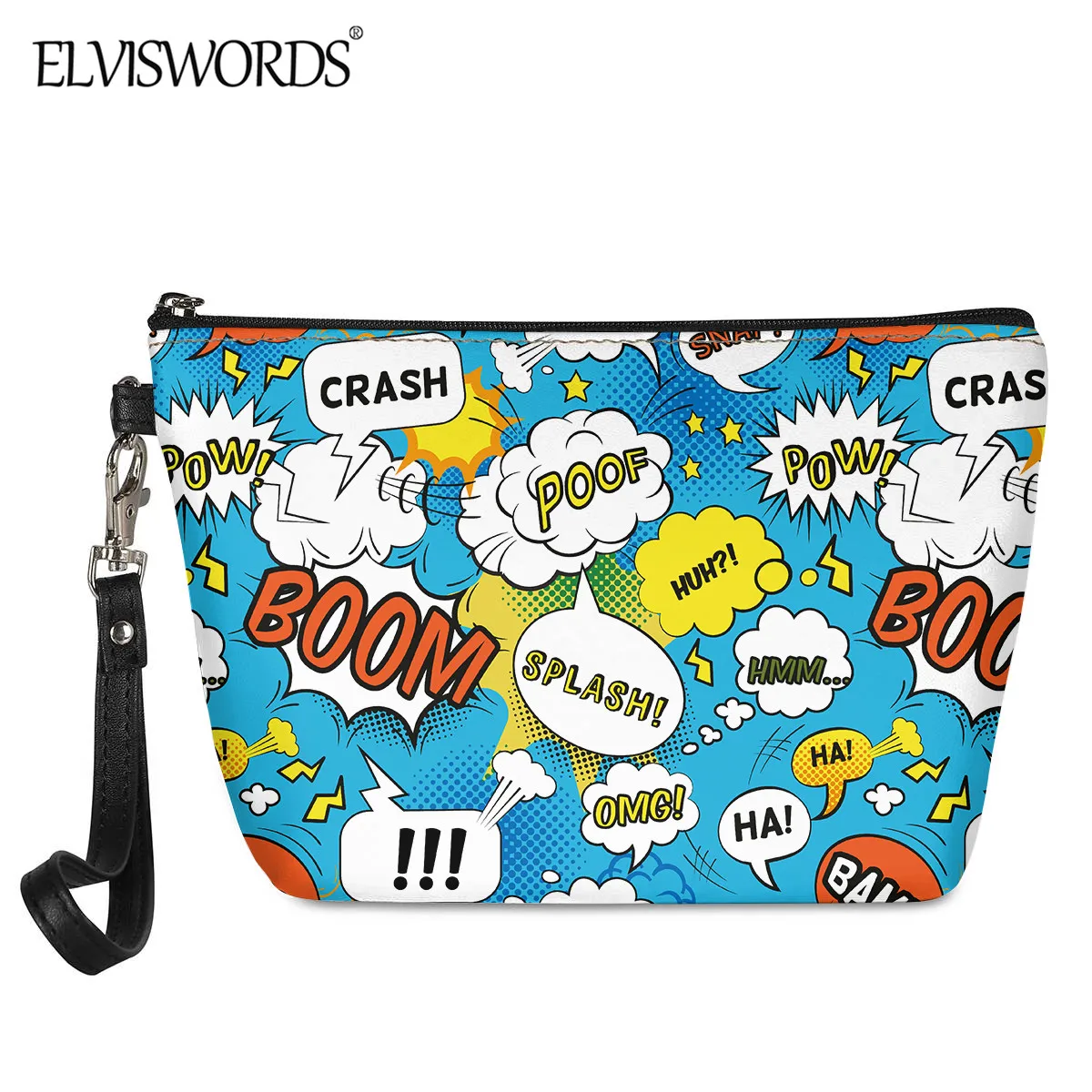 Модные косметички ELVISWORDS из искусственной кожи для женщин, новинка 2020, дамская сумочка для макияжа с забавным принтом комиксов, Повседневная Сумочка, чехол для женщин