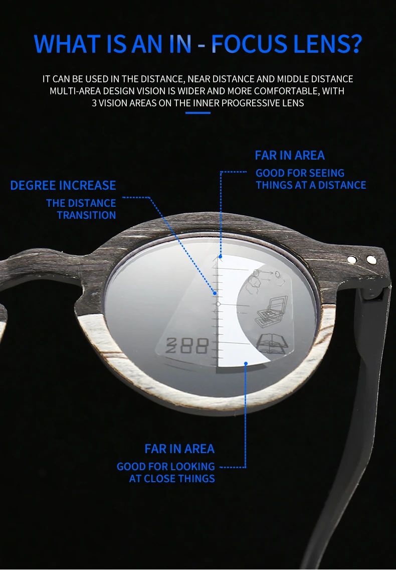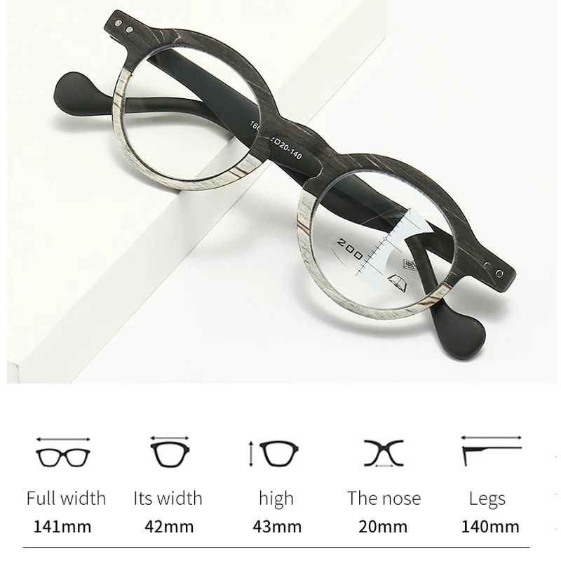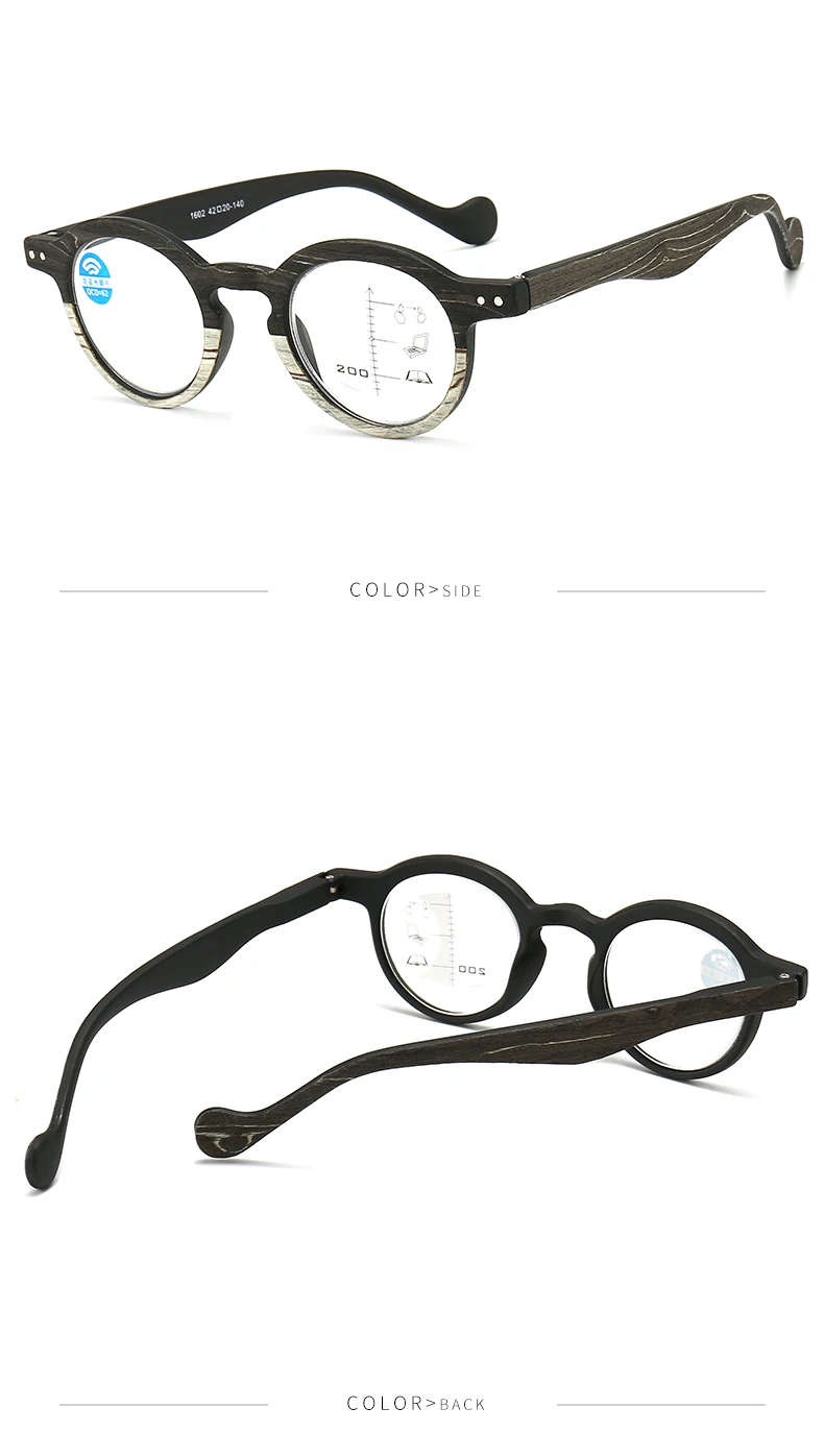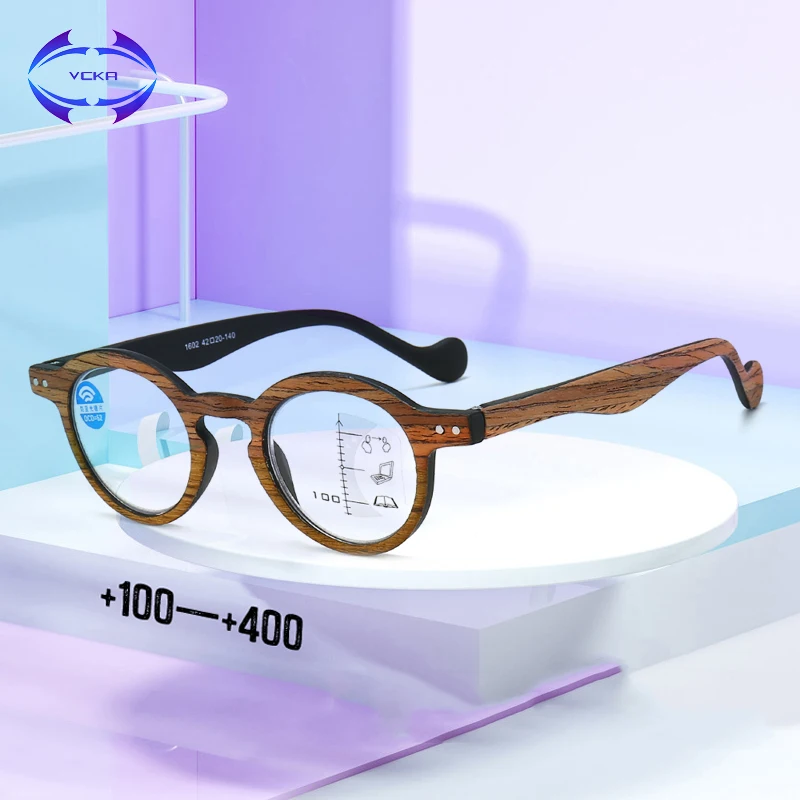 Очки для чтения VCKA с прогрессивным многофокальным эффектом, унисекс, без оправы, с защитой от сисветильник, в круглой оправе с текстурой древесины, от + 1,00 до + 3,50
