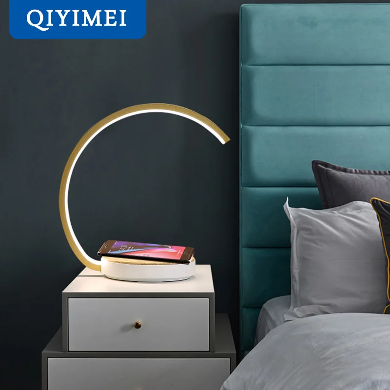 Беспроводной зарядной стол лампы для спальни светильник для чтения, прикроватная, для кабинета, защита глаз, рамка из белого золота, сенсорный затемняющий свет ing Techo