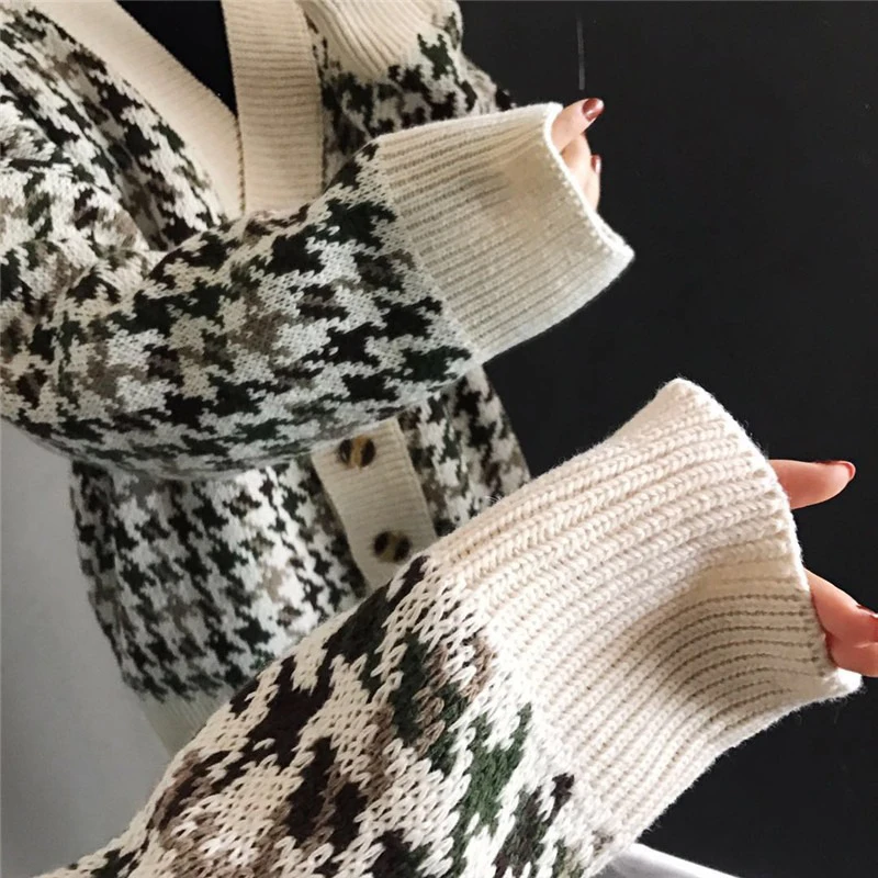Женский кардиган с V-образным вырезом, с рукавом-фонариком