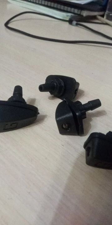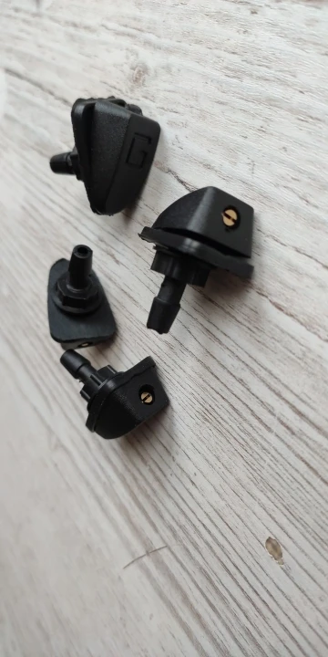 Форсунки распыляют плоским веером, ориентацию плоскости и её наклон можно регулировать плоской отверточкой. Снизу на патрубке присутствует небольшой облой но легко удаляется, крепится накидной пластиковой гайкой, т.е. универсально, резиновая прокладка есть.