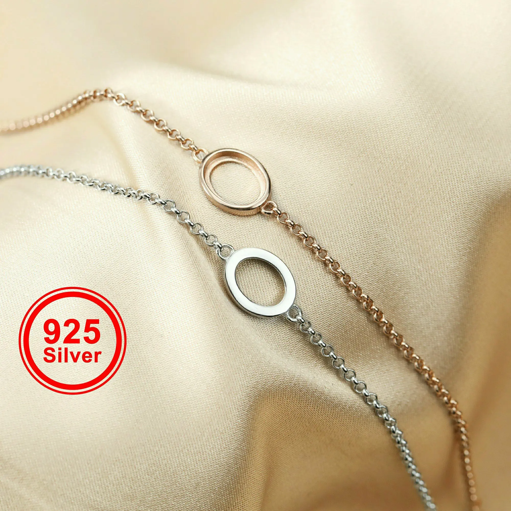 Несколько Размеры сплошной 925 пробы Серебряный Овальный Кабошон DIY ободок браслет настройки с покрытием из розового золота 6 ''+ 1,5'' 1900217