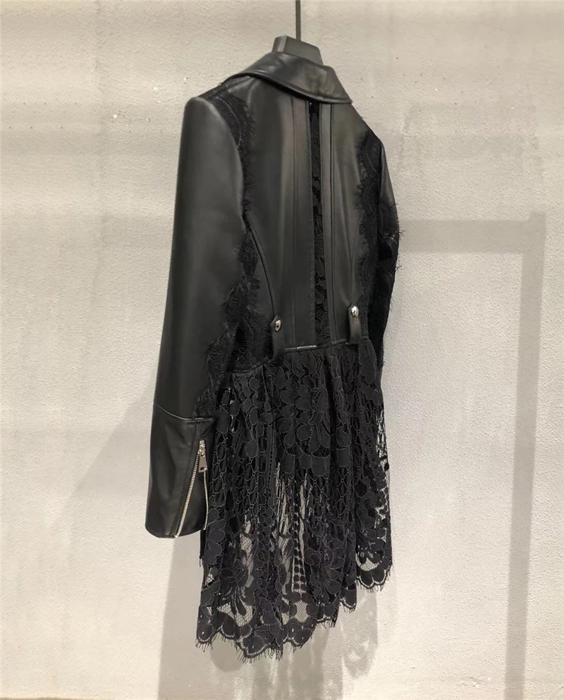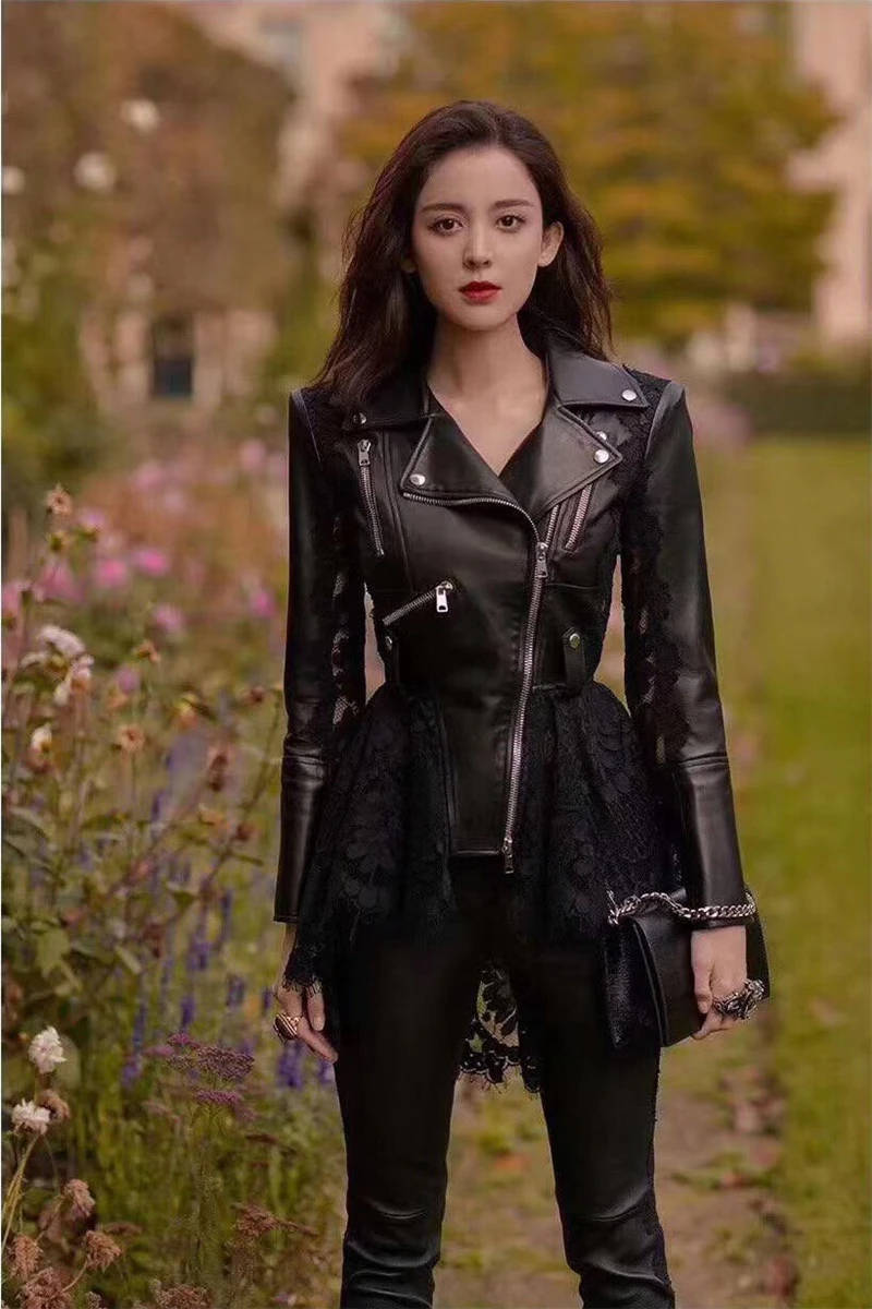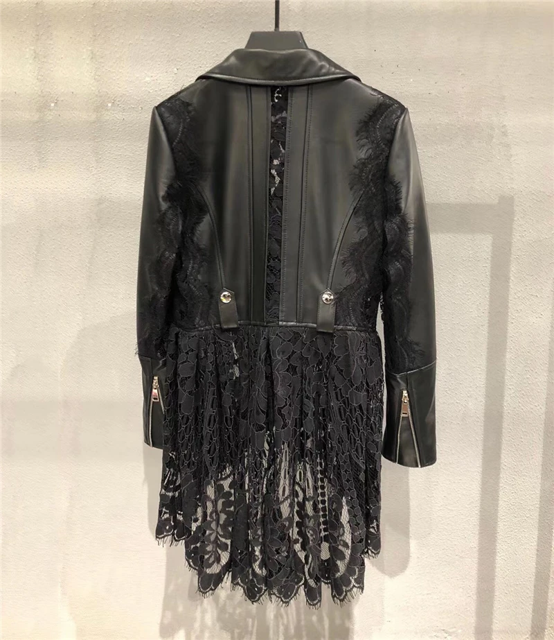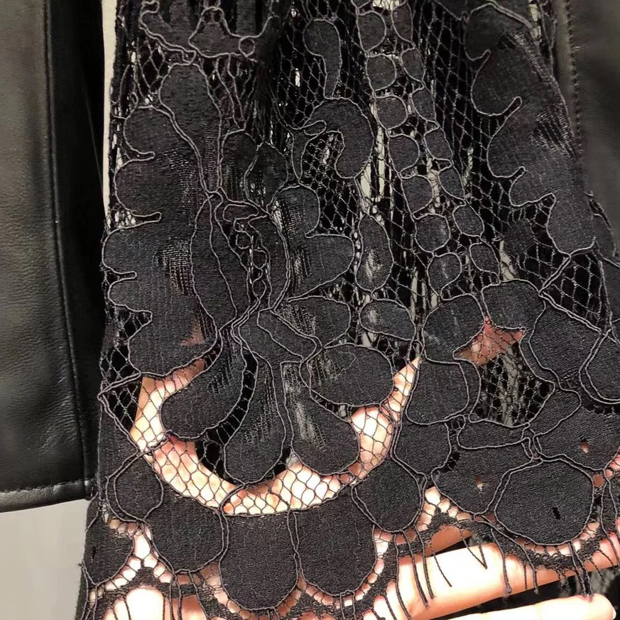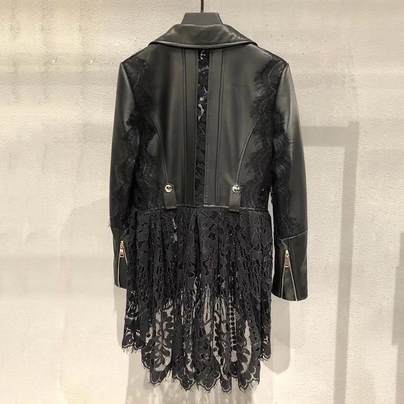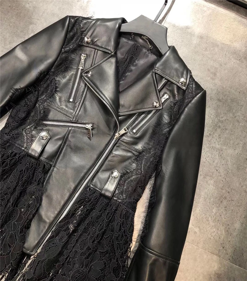 Новая весенняя Женская приталенная куртка из натуральной кожи с кружевным подолом, пальто из 100% натуральной кожи на молнии в стиле локомотива