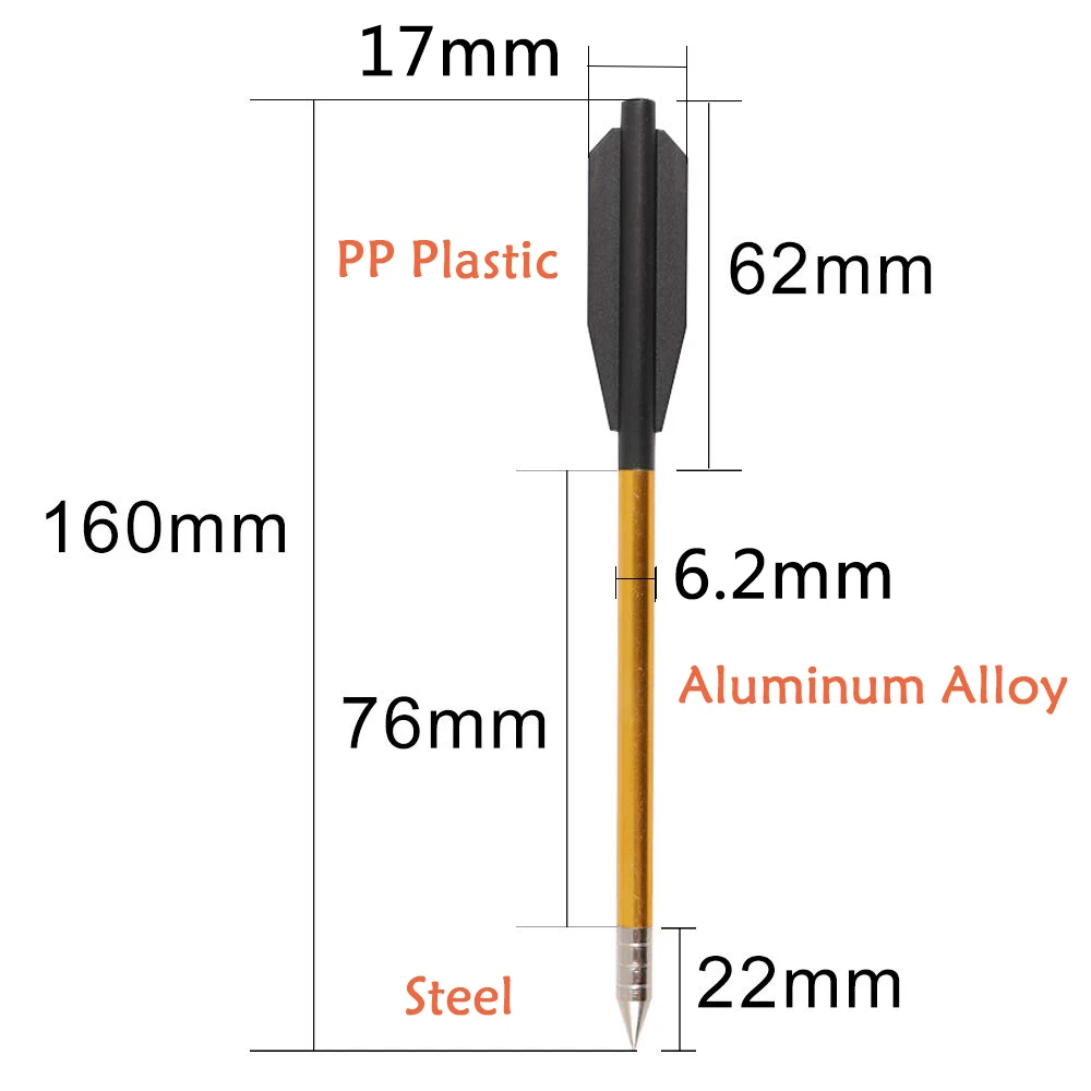 ☑Мини арбалет стрелы точка Материал: алюминиевый сплав вал с металлическим наконечником, 2x флетчи/полеты для стабильной поездки от лука до цели