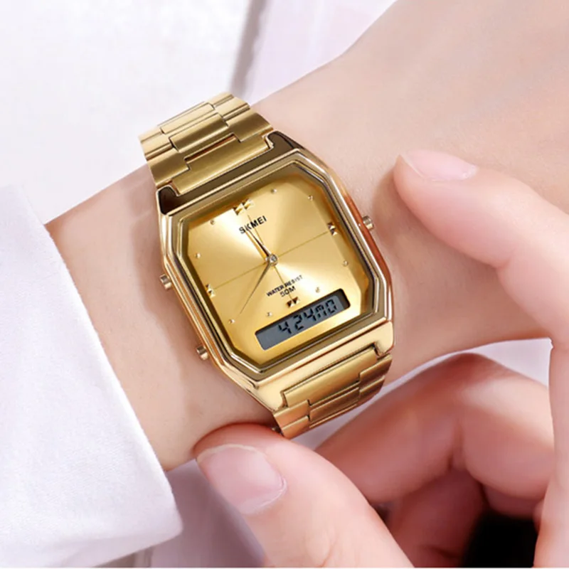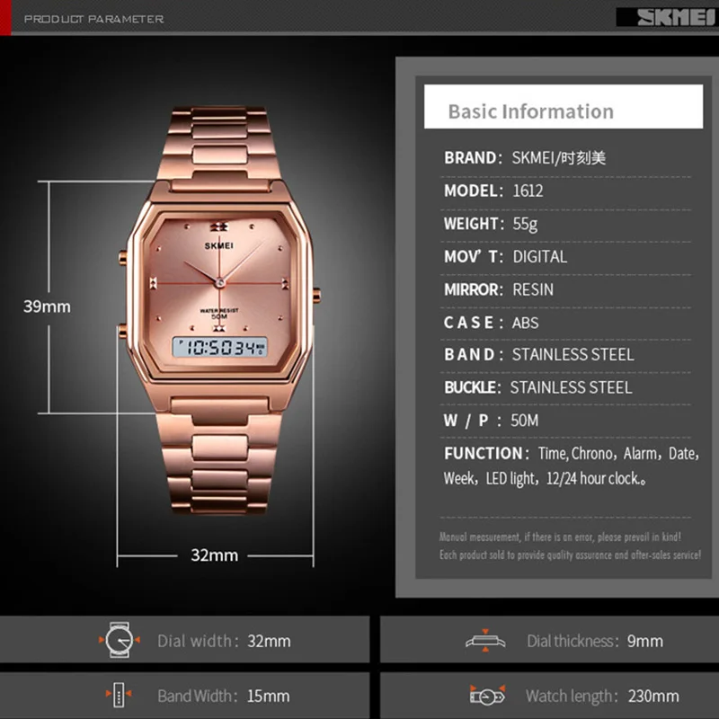 Часы наручные SKMEI женские цифровые, роскошные спортивные брендовые из нержавеющей стали, с браслетом под розовое золото