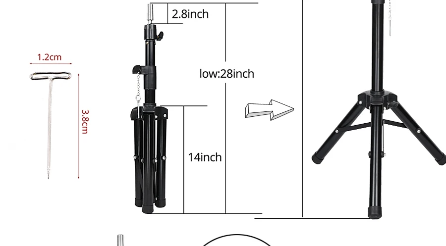 Подходит для студентов косметологии или кого-либо для практики резки, плетения, установки.Лучший удобный способ для тренировки стрижки волос.1 Вращающаяся головка, регулируемая высота для удовлетворения ваших различных потребностей.2. Безопасный манекен для тренировки.3 поставляется с сумкой для переноски, легко носить с собой.4 Новые и высококачественные, красивые и удобные, лучшие для студентов, парикмахеров, салонов, домашних пользователей и т. д.5. Очень прочный и прочный, для повышения стабильности штатива предусмотрен стабилизатор штатива.6 идеально подходит для использования с насадками для тренировки волос.7 этот штатив-Трипод стойка изготовлен из алюминиевого сплава, которая стоит дороже, чем металлического железа, и светильник вес. Соединение из алюминиевого сплава делает его более прочным, прочным и стабильным. Сильнее обычного штатива, пожалуйста, не сравнивайте нашу цену с плохим качеством.Характеристики:Тип: штатив парикмахерскийМатериал: железоВысота в сложенном виде: прибл. 28 дюймов/70 смМаксимальная высота: прибл. 50 дюймов/126 смРазмер посылка: прибл. 63*12*14 смВес изделия: прибл. 422,3 г/14,9 унцийВес посылка: прибл. 1750 г21 дюйм = 53,34 см 22 дюйма = 55,88 см 23 дюйма = 58,42 см24 дюйма = 60,96 см