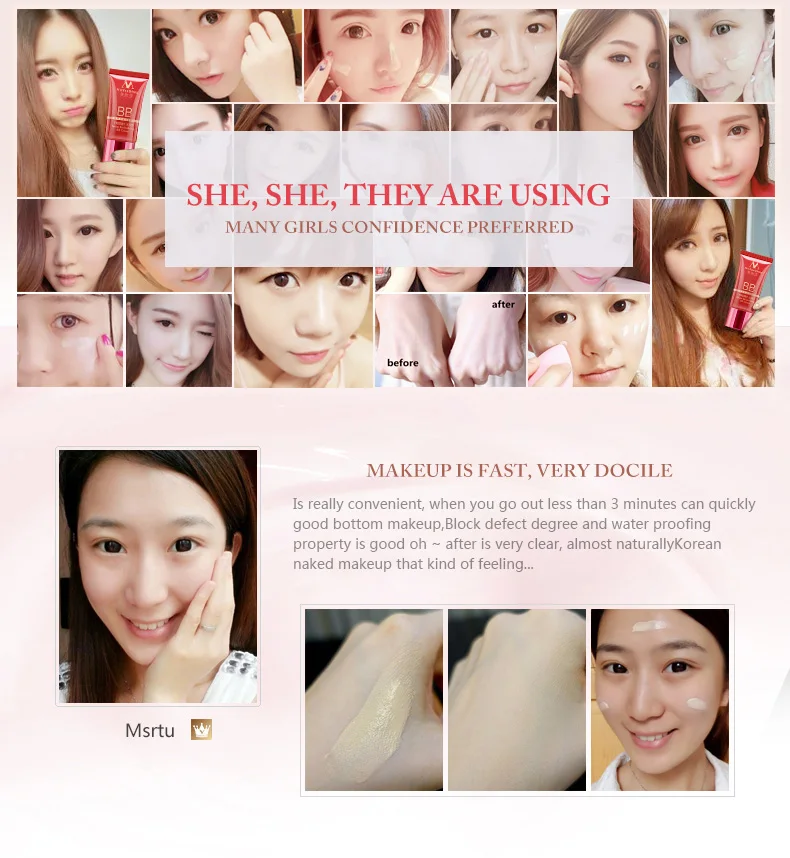 Высокое качество, MeiYanQiong свежий и влажный Восстанавливающий BB крем для макияжа, уход за лицом, отбеливающий компактный тональный консилер, предотвращающий греть уход за кожей Название: MeiYanQiong Характеристики продукта: Содержит натуральный растительный экстракт со свежей и влажной текстурой, он помогает очистить кожу, отрегулировать цвет кожи, скрыть поры кожи, покрыть морщины и недостатки. В то же время он может изолировать и защитить кожу от внешнего загрязненного вреда, который сделает вашу кожу нежной и вибрирующей, показывая пухлый и естественный цвет кожи. Применение: Используйте после восстановления основной кожи, нанесите количество крема MeiYanQiong BB на лицо, а затем нажмите плотно прилегающую кожу. Срок годности: три годаТип кожи: подходит для всех типов кожи. Внимание:Пожалуйста, прекратите использование, если вам будет неудобно. Состояние хранения:Положите в прохладном и сухом месте и вдали от солнечного света.