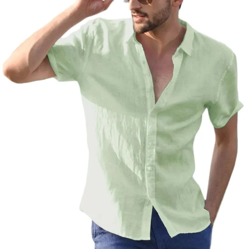 Мужской однотонный кардиган с отложным воротником, однобортная рубашка, мужская повседневная Легкая рубашка с коротким рукавом, лето