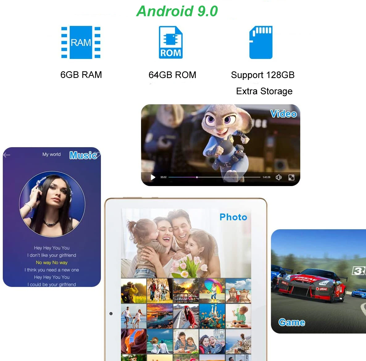 10 дюймовый планшет Octa Core 6 ГБ Оперативная память 64 Гб Встроенная память IPS HD Экран Dual SIM карты Телефонный звонок GPS Bluetooth подключение к автомобилю + подарки