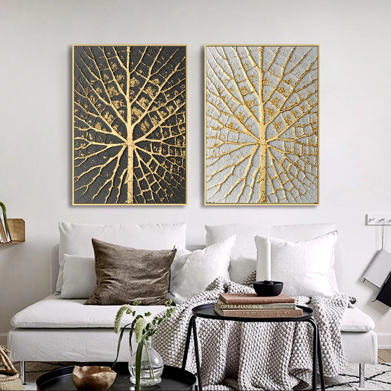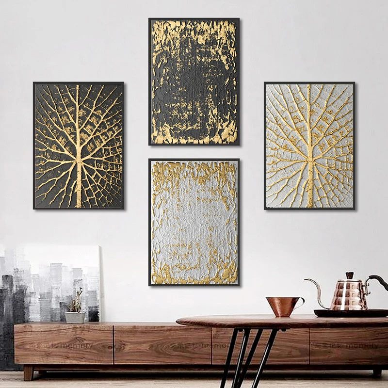 Классические абстрактные постеры с текстурой золотых листьев, настенные художественные картины, модульные картины, Декор для дома, картины