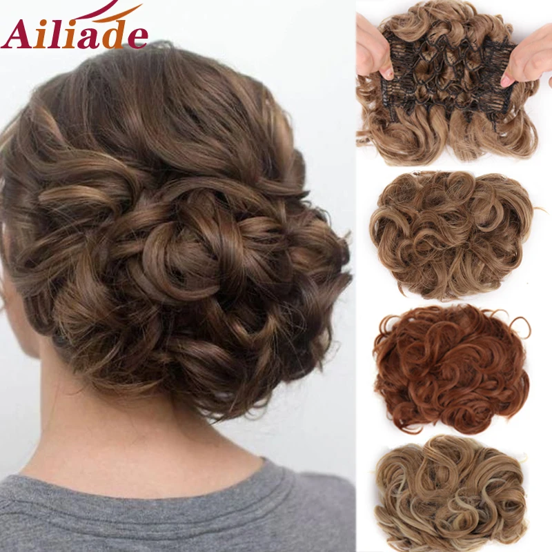 Расческа AILIADE, термостойкие кудрявые синтетические волосы, шиньон, накладная накладка, эластичная резинка для волос