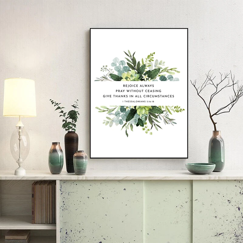 1 тексалиан 5:16-18 зелень, Библия, печать, тексты, постер, христианские картина с цитатой, гостиная, настенное искусство, Декор