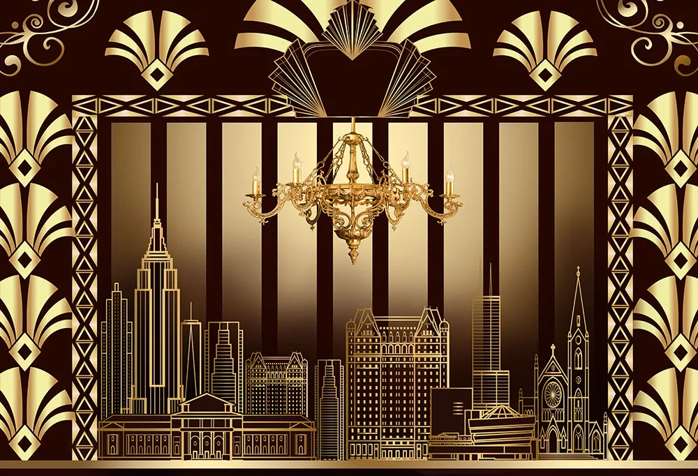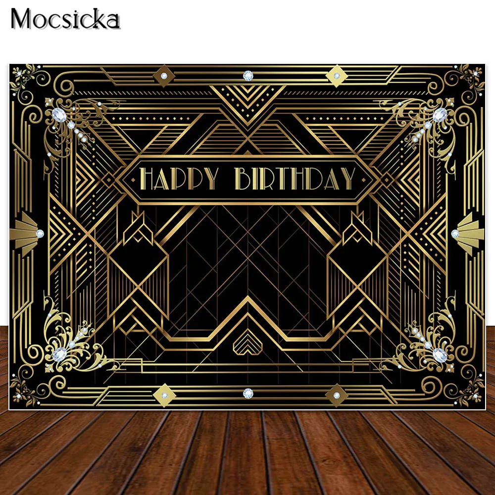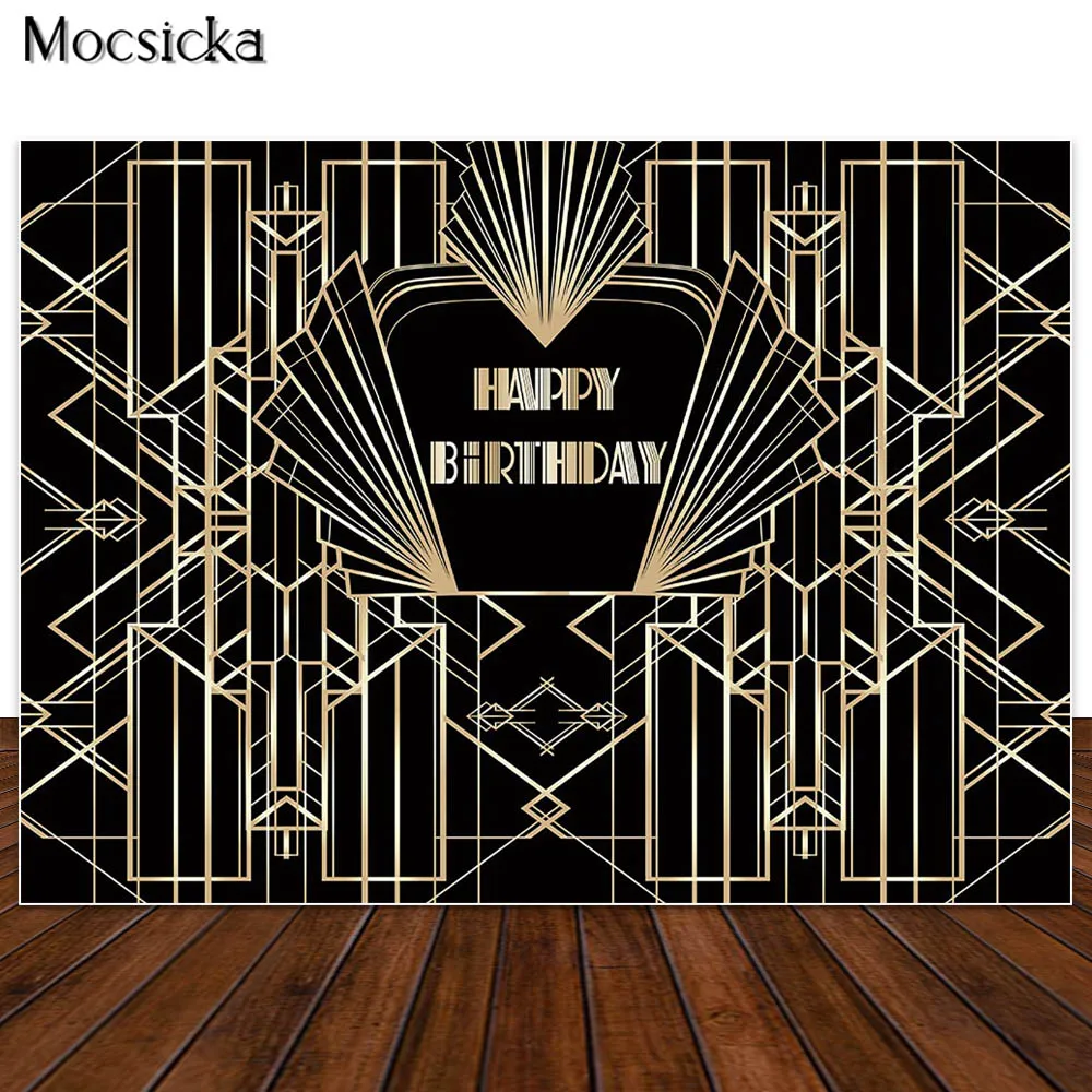 Фон для фотосъемки Great Gatsby тематическая вечеринка на день рождения с черными и золотыми линиями на заказ декор для дня рождения баннер