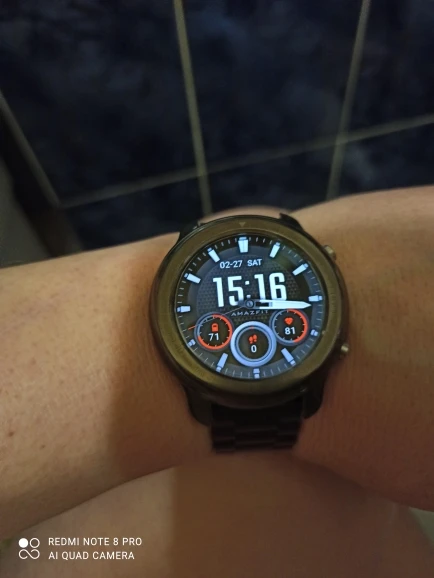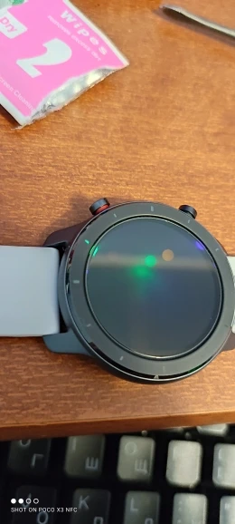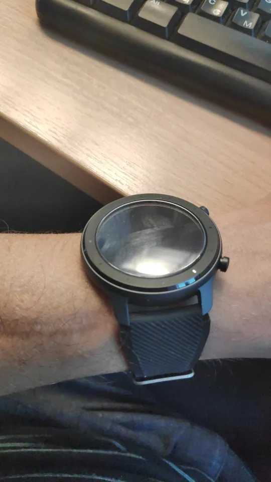 Это довольно хорошо. Он остается прямо в циферблате, но экран должен быть немного изогнутым, и вокруг него он не просто хорошо прилипает, но он не отрывается и едва заметен. (Amazfit GTR 47 мм)