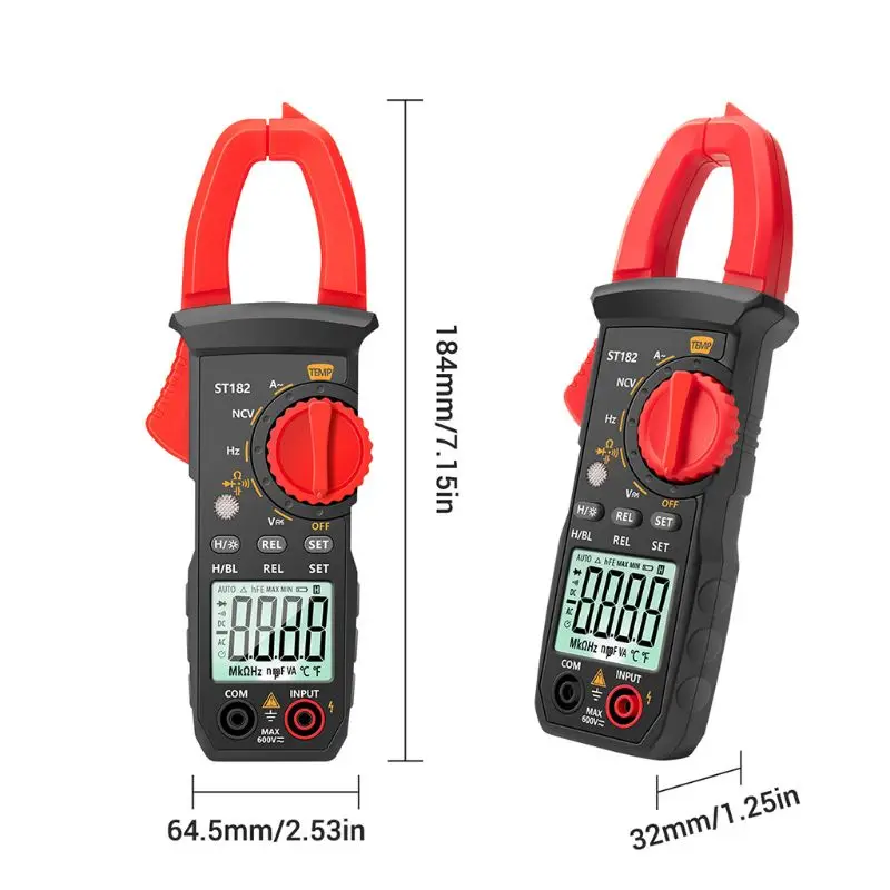 Цифровой мультиметр-зажим ST182, амперметр постоянногопеременного тока, измеритель напряжения постоянногопеременного тока, тестер температуры, емкости, бесконтактного напряжения, Ом, G8TB