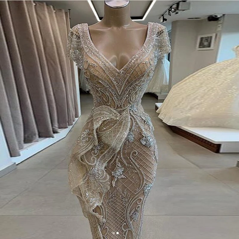 Женское вечернее платье-русалка, Прозрачное платье цвета шампанского с закрытыми рукавами, на молнии, для выпускного вечера, 2020