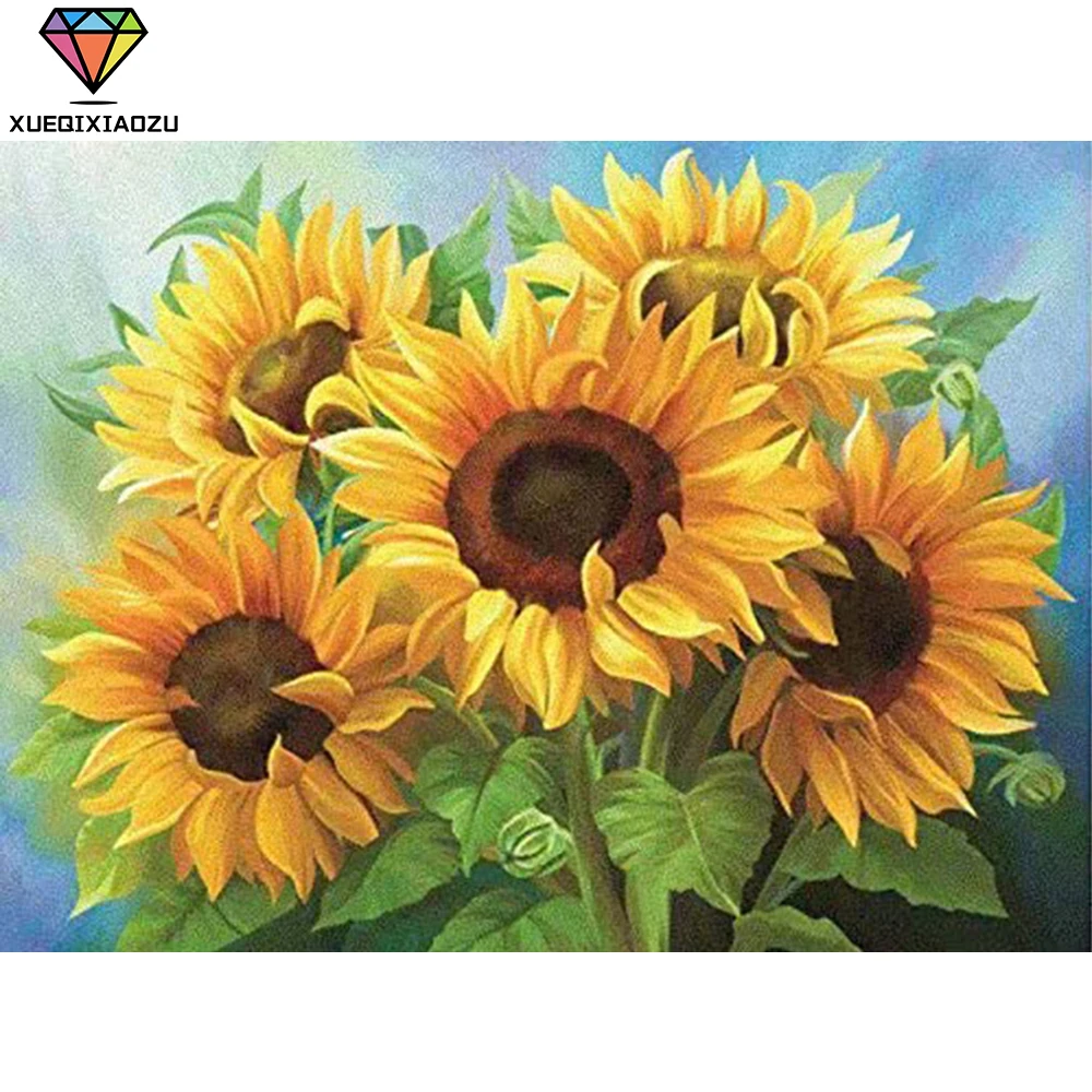 Мозаика из круглых страз с подсолнухами XUEQIXIAOZU, картина 5D "сд...