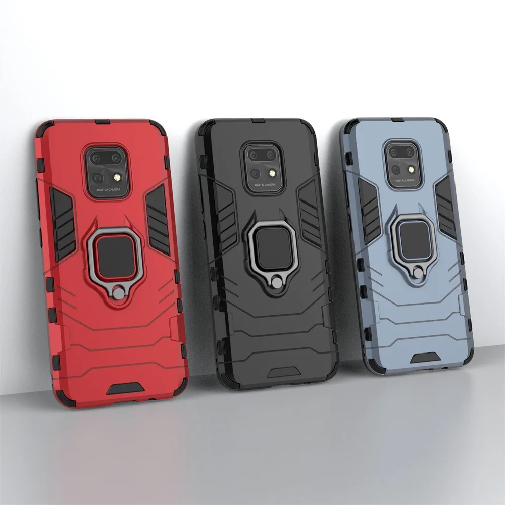 Противоударный бронированный чехол для Xiaomi Redmi 10X 10 X 5G 4G Note 9, гибридный жесткий чехол из ТПУ с вращающимся кольцом и подставкой