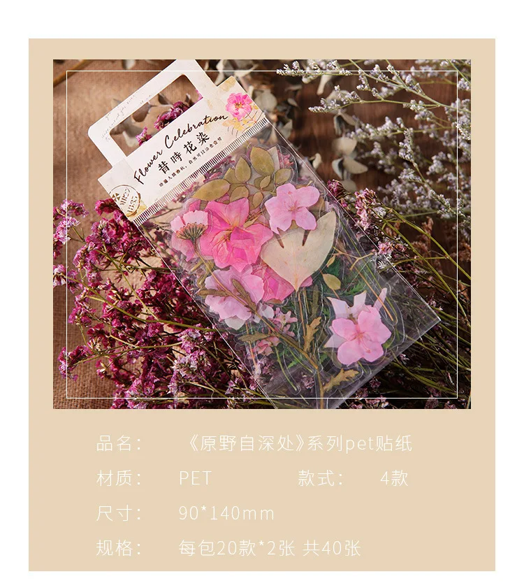 40 шт.упак. наклейки с дикими цветами, прозрачные дневник в стиле Скрапбукинг этикеток, декоративные бирки