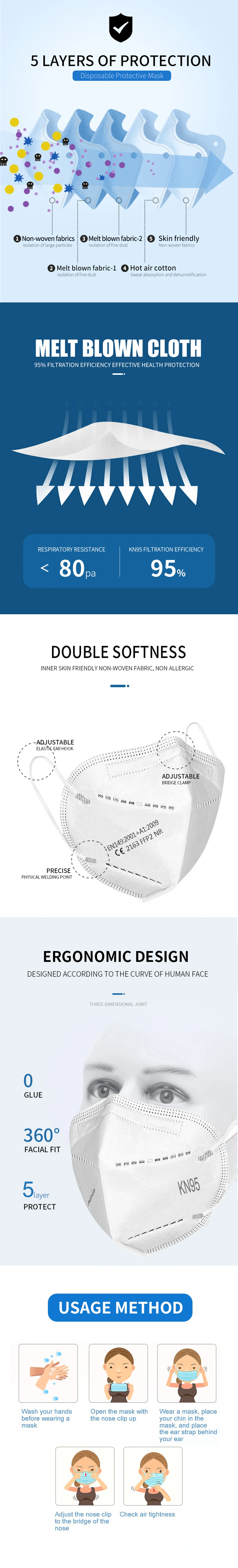 5-200 ffp2 маска для лица KN95 FPP2 маски 5-слойные фильтрующие маски защитные маски для безопасности рта против пыли маска для здоровья ffp2mask
