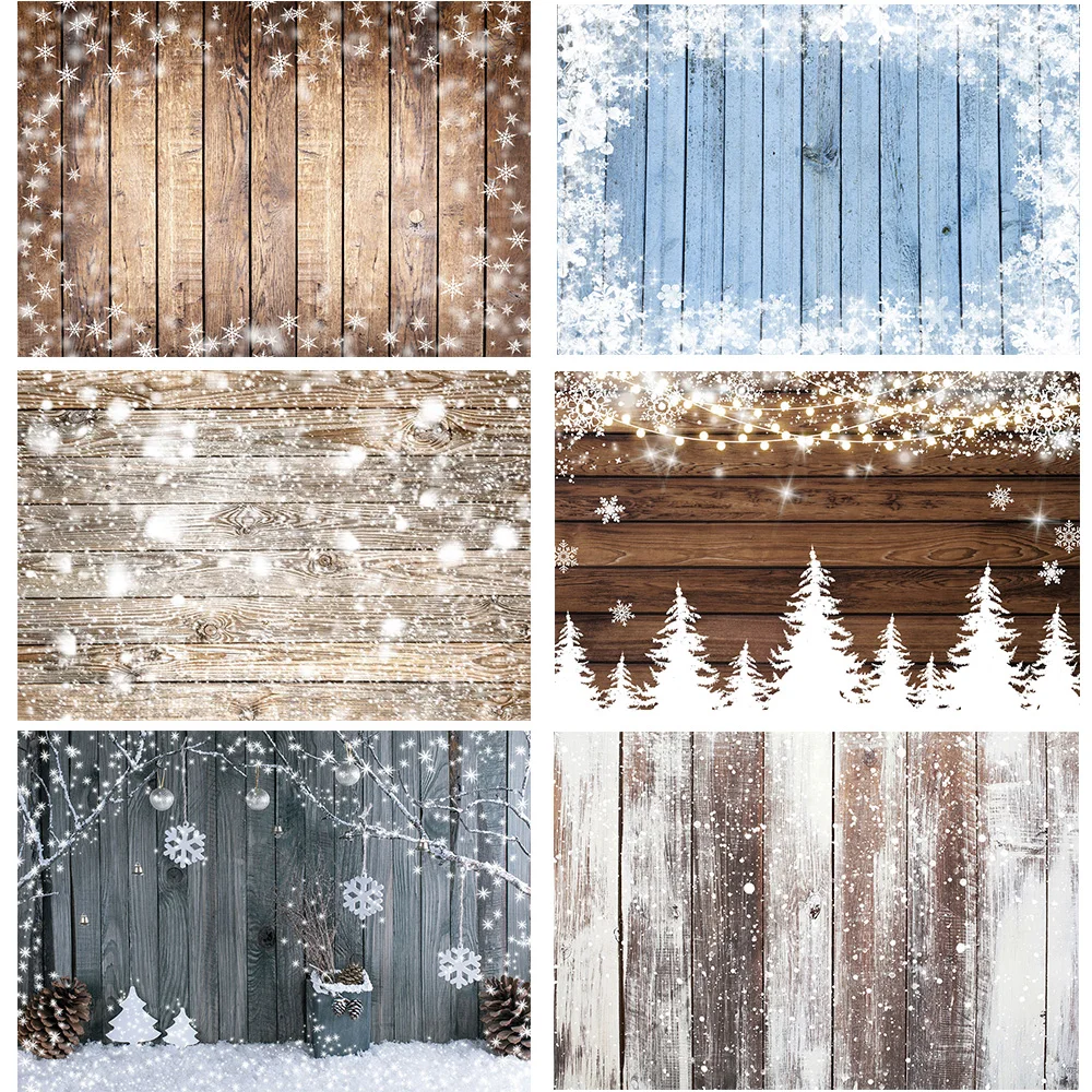Фон для фотосъемки с изображением деревянного пола в рождественском стиле