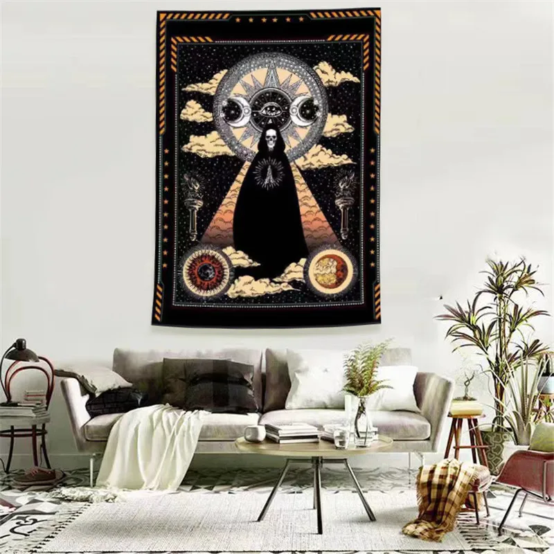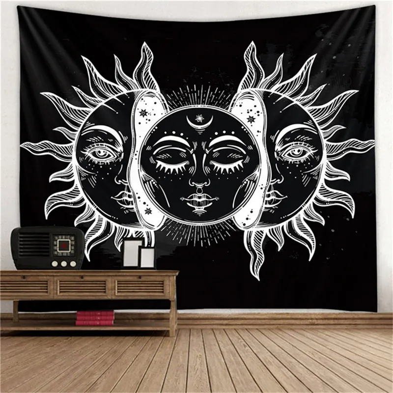 Sun Moon МАНДАЛА ГОБЕЛЕН с белыми и черными одеяло с черепом Спальня настенный Boho ковры психоделические гобелены домашний декор