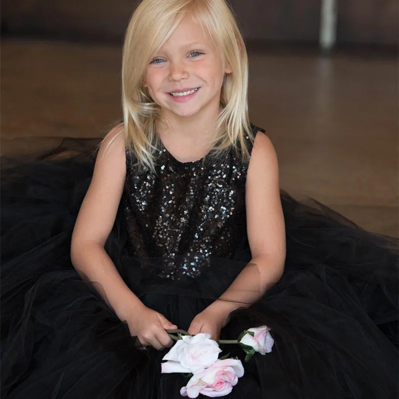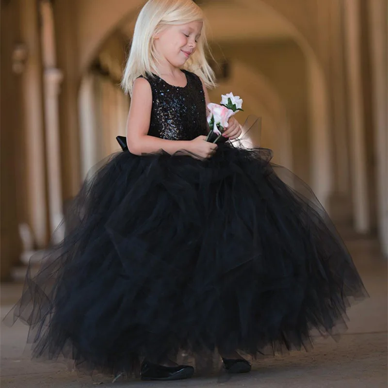 Платья для девочек, черные, с высоким вырезом, без рукавов, с цвето...