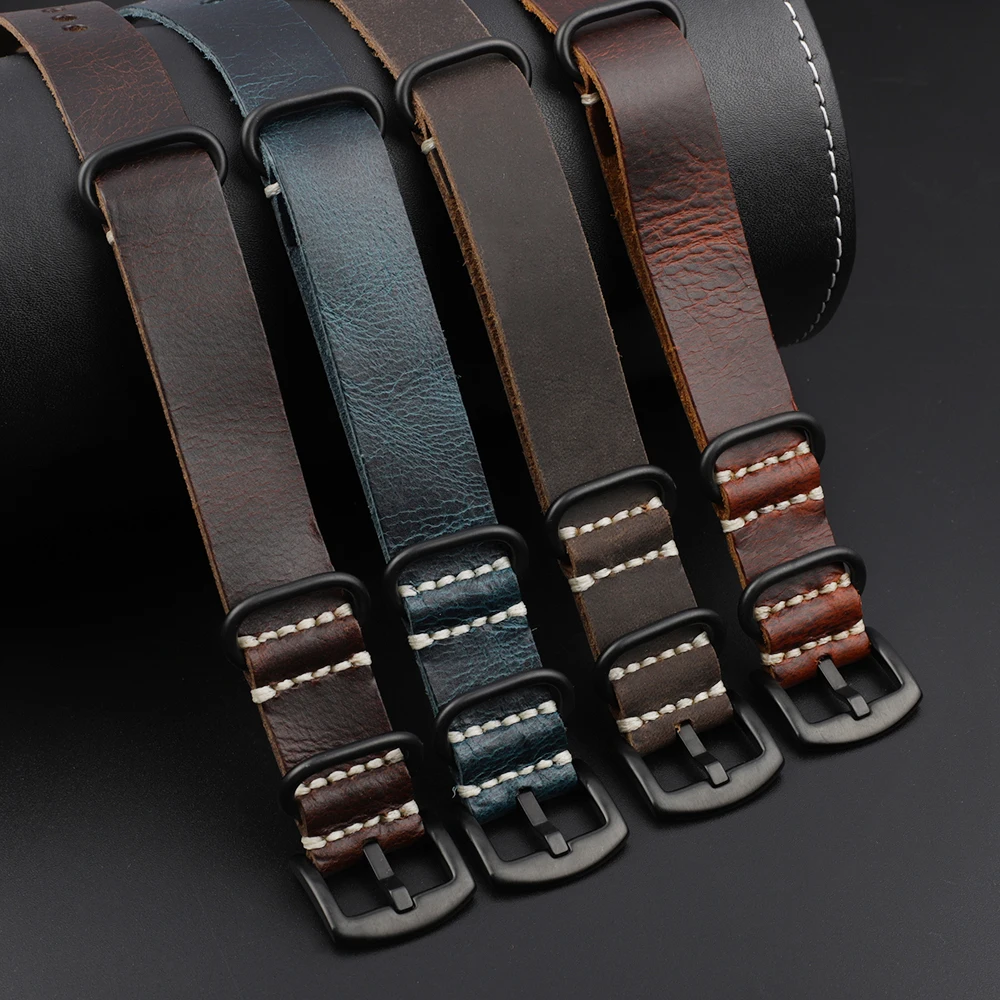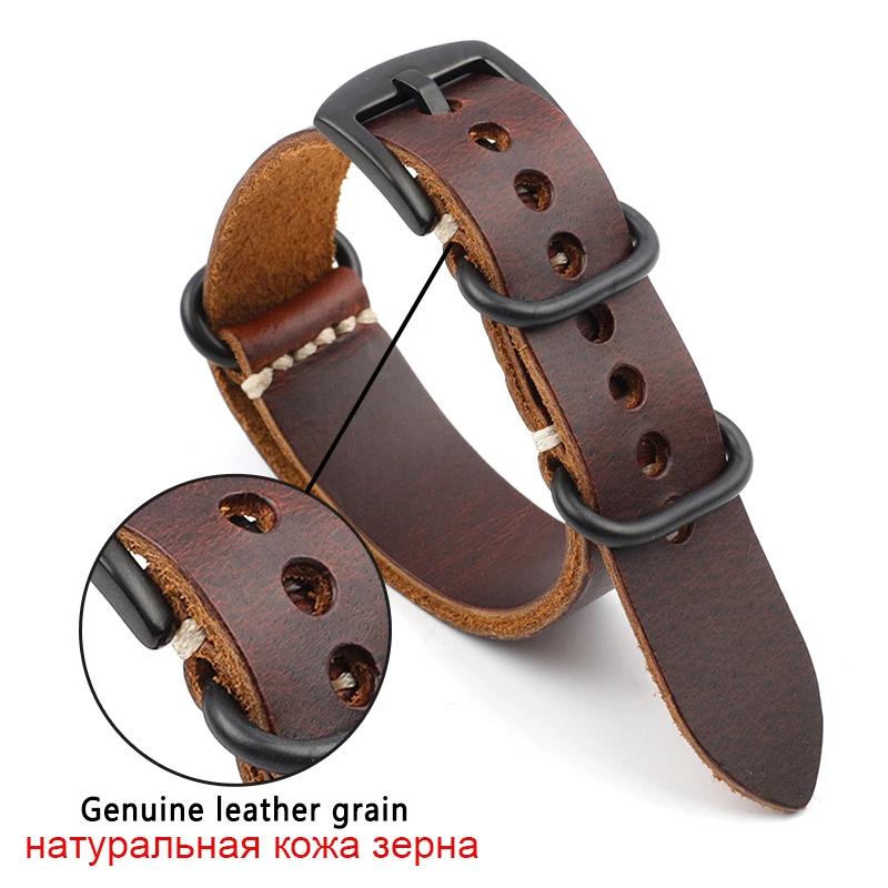 Кожаный ремешок для часов НАТО 20, 22, 24 мм, ретро-узор, браслет Brwon Coffee Zulu, винтажный ремешок для часов ручной работы # E