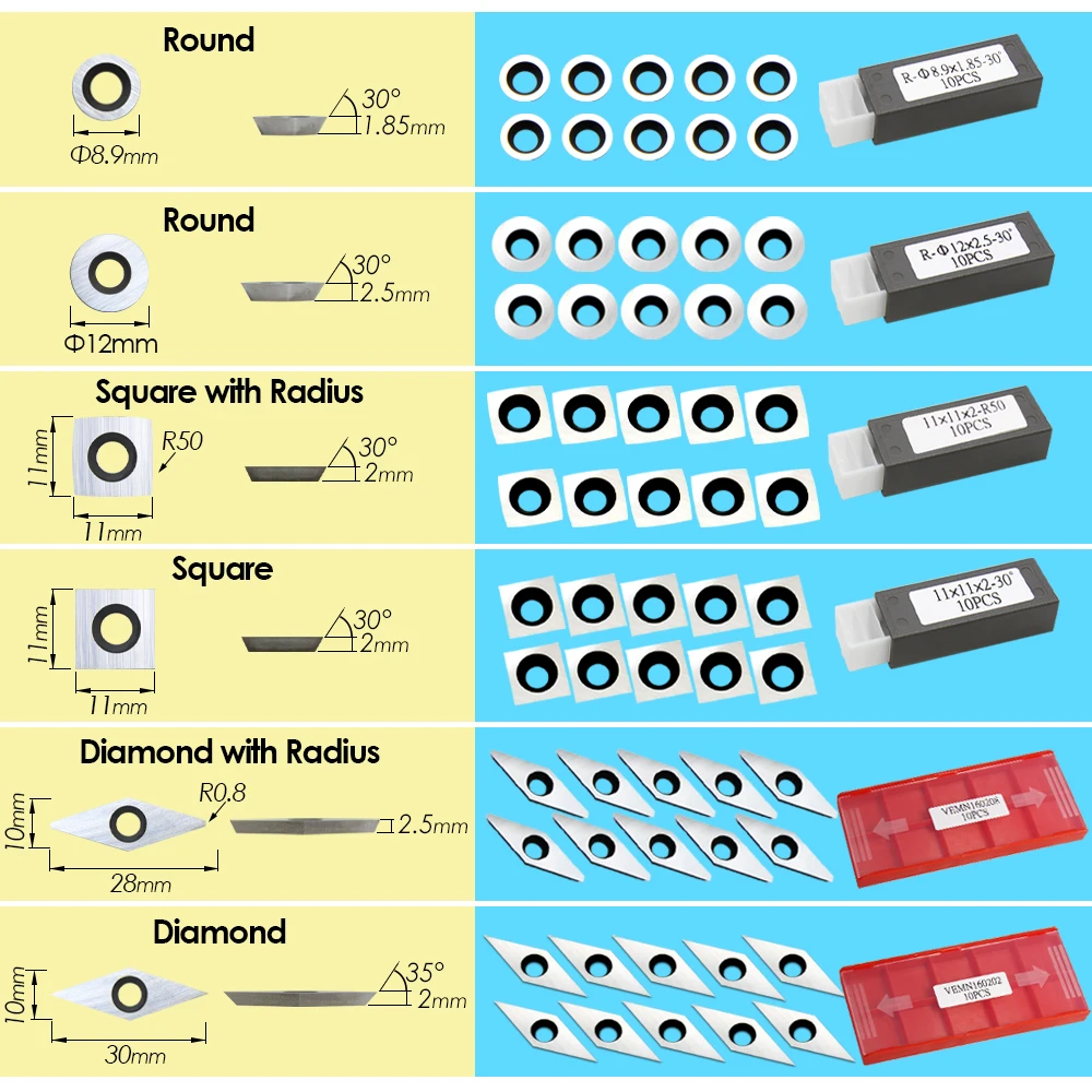 TASP 10 шт. карбидные вставки фрезы токарные инструменты для дерева квадратные алмазные круглые Сменные ножи для токарного станка деревообрабатывающий инструмент