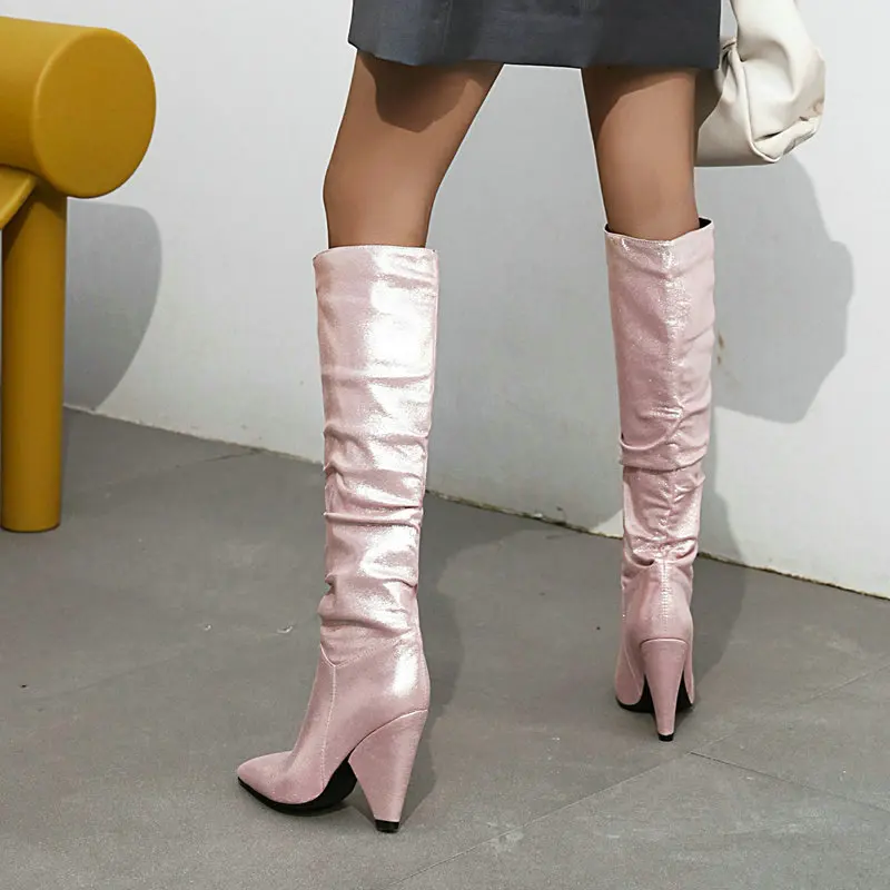 Женские Плиссированные сапоги до колена, с острым носком, на высоко...