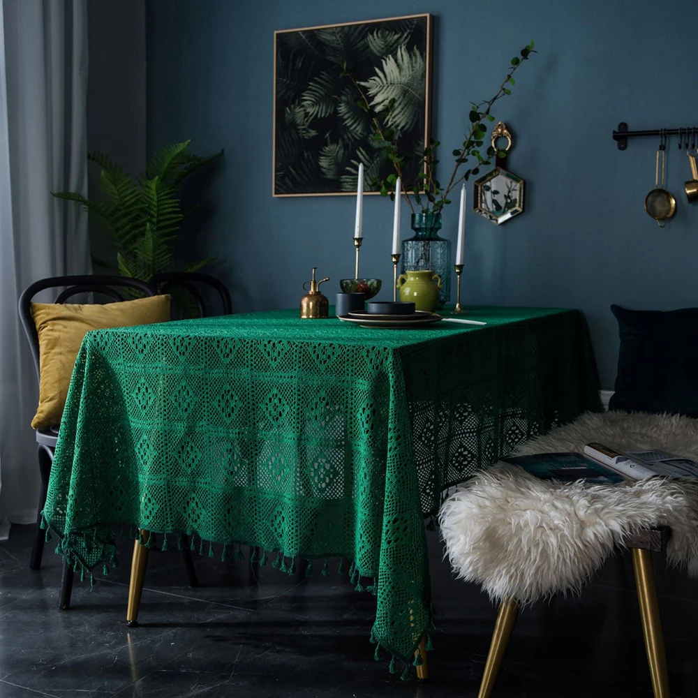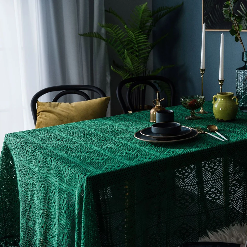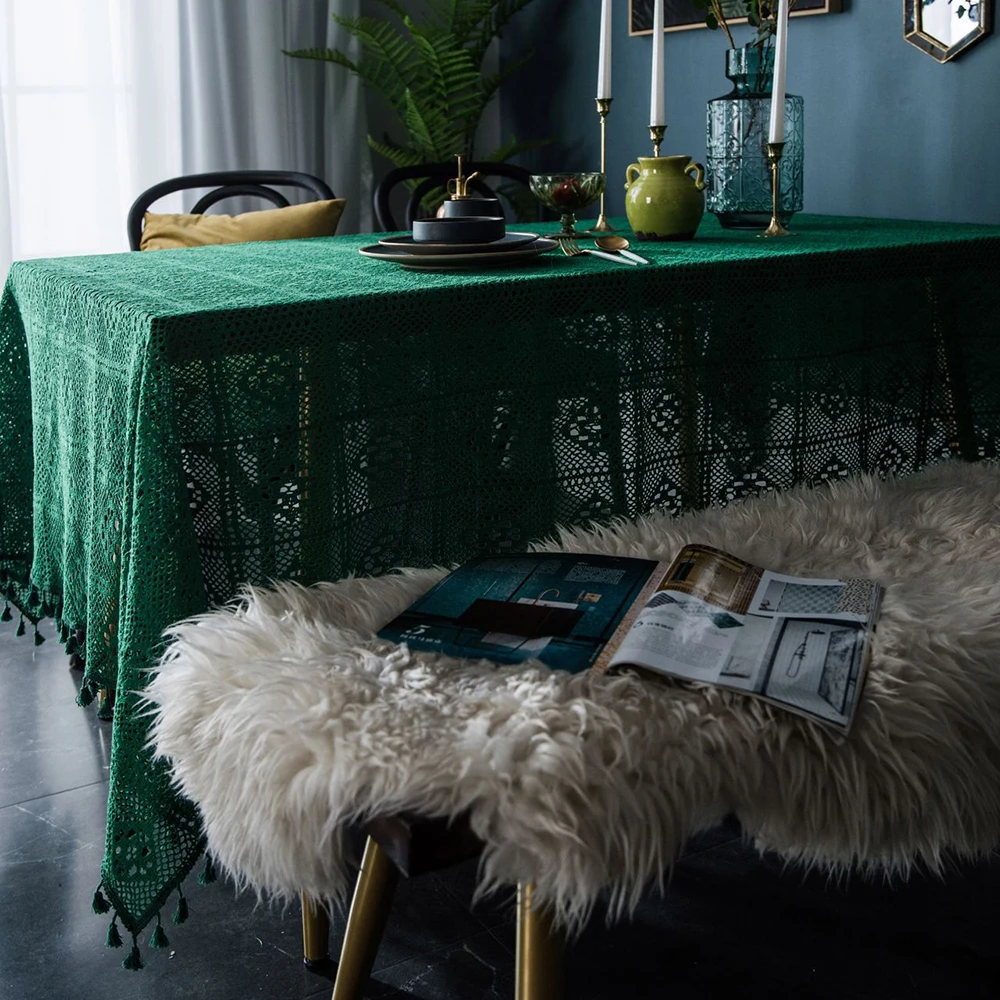 Темно-зеленая Ретро скатерть ручной работы, вязаная крючком круглая скатерть, художественный журнальный столик, обеденный стол, журнальный столик, скатерть