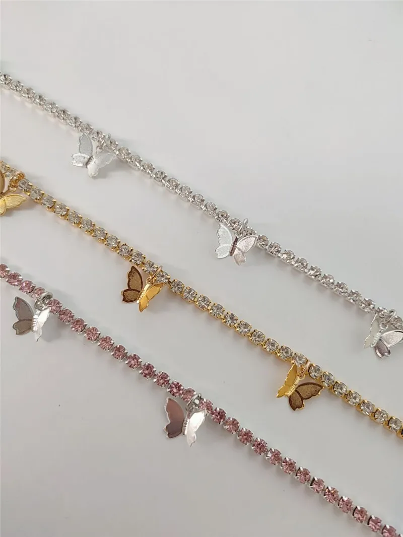 Цепочка женская с подвеской-бабочкой, модное ожерелье с кристаллами...