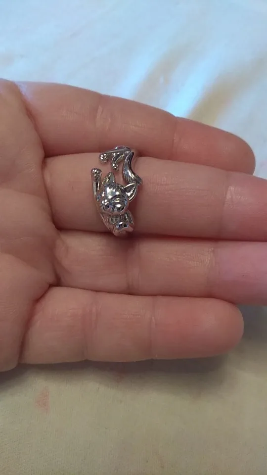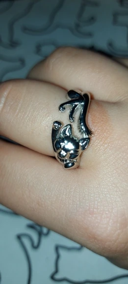 Колечко оригинальное -- в виде кошечки. Детали животного чёткие, качество соответствует. Конечно, не серебро, но пробу оформили. Удобное, блестящее, миленькие такое. Размер, по моим ощущениям, немного не соответствует -- надо брать большого размера. Понравилась цена и качество, спасибо! Доставка недолгая, трек отслеживался.