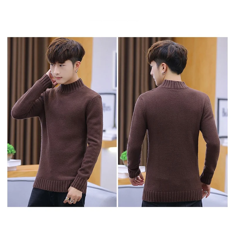 Мужской пуловер с воротником-стойкой, облегающий трикотажный джемпе...