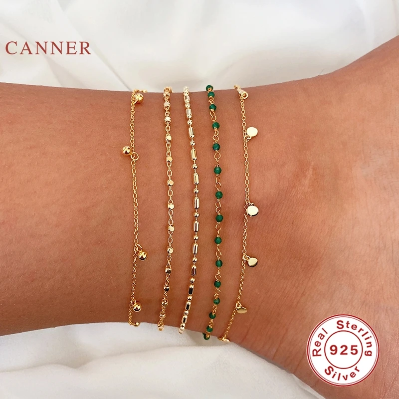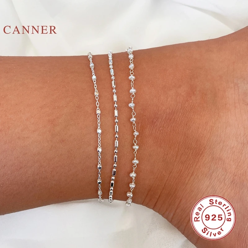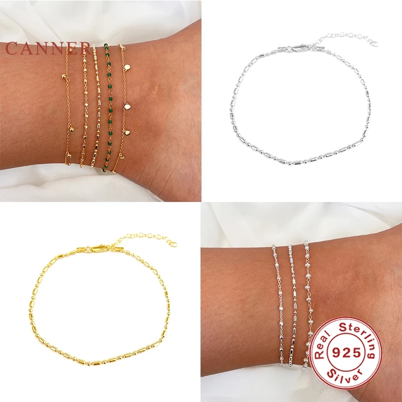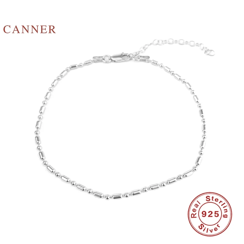 Женский простой браслет CANNER Ins, Круглый браслет из стерлингового серебра 925 пробы с бусинами, летние ювелирные изделия для ног