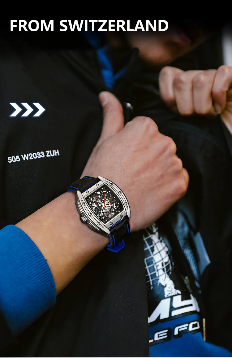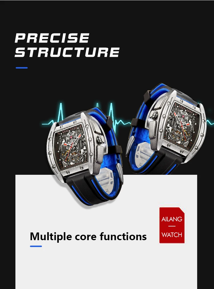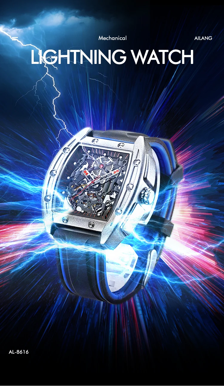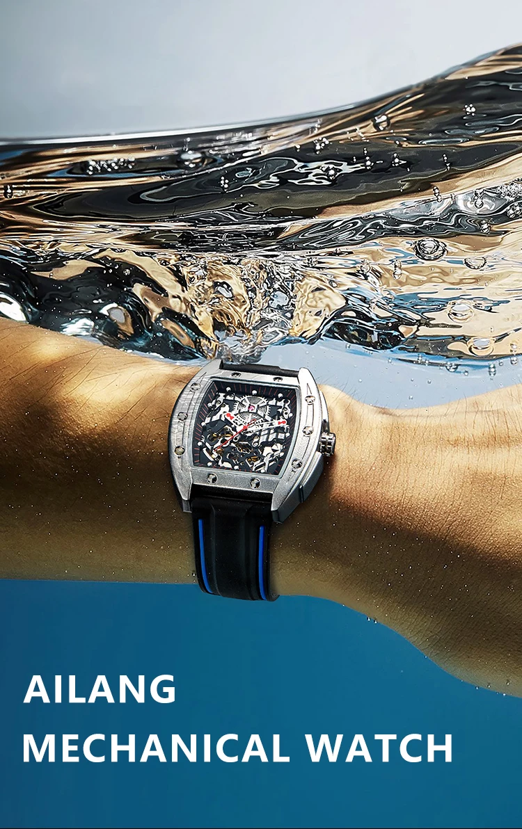 2020 новые AILANG автоматические механические мужские военные Роскошные брендовые бизнес выдолбленные водонепроницаемые мужские часы с резиновым ремешком