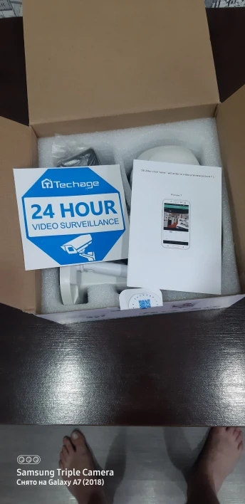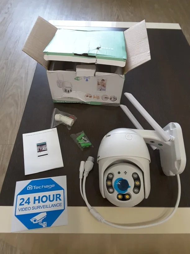 Я заказал две камеры, доставленные курьером к двери. Упаковка, все. Одна камера проверена, загрузите приложение на планшете, Подключено через Wi-Fi. Все работает, камера управляется вертлюгом, загорается, двусторонняя звуковая связь, все работает. Камера неожиданно большая, корпус пластиковый, неизвестно, как она будет вести на улице, я проверю. Заказал без BP, поставляется с блоком, приятно.