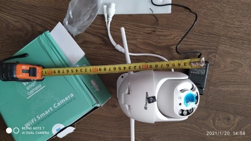 Заказ 11 ноября 2020, на почту в Беларусь прибыла за 75 дней (26 января 2021), продавец после запроса продлил срок защиты. Продавец дал левый трек, который не отслеживался (на упаковке указан правильный трек) доставка бесплатная. У продавца была получена скидка. Товар пришел в картонной заводской коробке, упакованной в белый почтовый пакет с пупыркой внутри. Коробка немного помялась, всё дошло без повреждения. В комплекте - камера видеонаблюдения (с разъемами rj-45, dc), блок питания (12V, 2,5A), инструкция, наклейка-предупреждение о видеонаблюдении, комплект крепления, влагозащитная муфта. Заявленным характеристикам соответствует (заказывали 5mp, 3.6 mm, 12В, microSD 32Gb(написано класс10, протестировали, максимум 4 класс). От камеры к двум антеннымм разъемам идут проводки, внутрь не залазили, надеемся, что работают две антенны, светодиоды достаточно мощные, освещают хорошо. Камера работает. Еще не протестировали