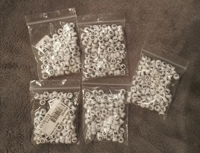 бусины хорошие. буквы видны, но уж очень неприятный запах
