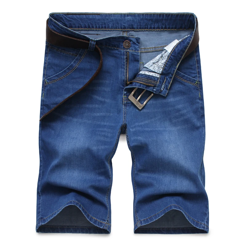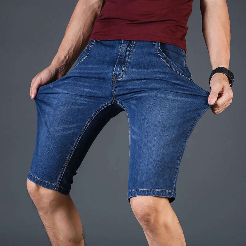 Шорты мужские джинсовые стрейчевые, модные тонкие шорты из денима в деловом стиле, повседневные Узкие синие джинсовые шорты, размера плюс 40 42 44 46, лето