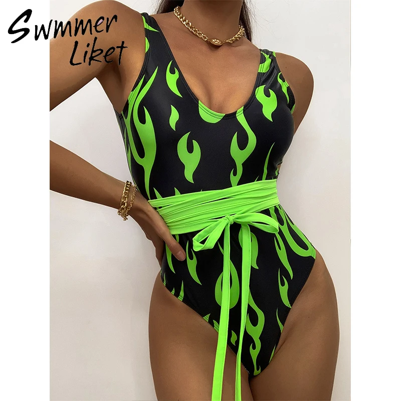 Сплошной купальник с принтом огня, Женский винтажный Монокини, костюм для сна, элегантный купальник, женский купальный костюм, купальники большого размера, 2020