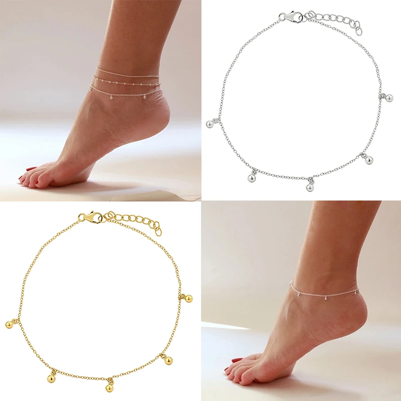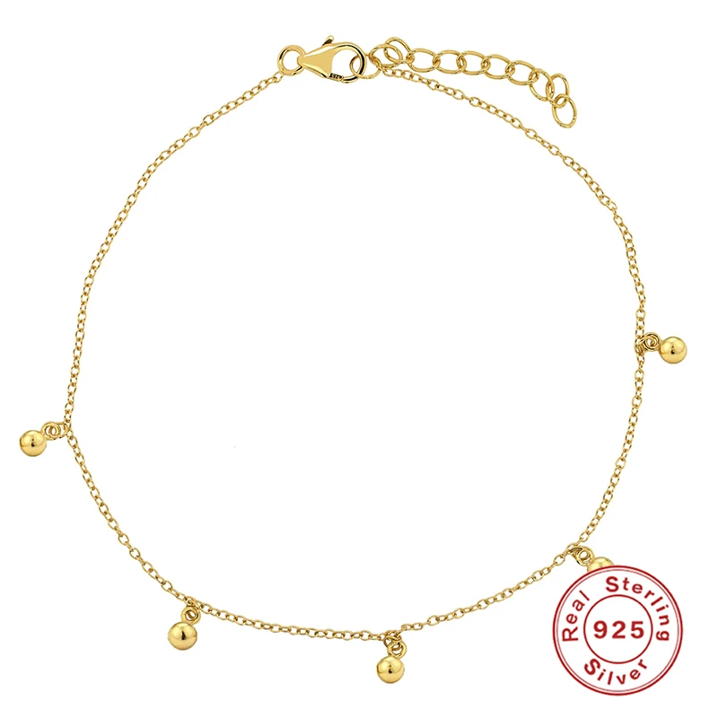 Женский браслет на ногу из серебра 925 пробы, с маленькими бусинами
