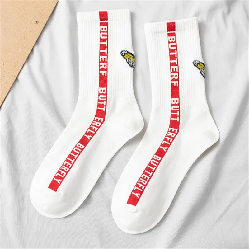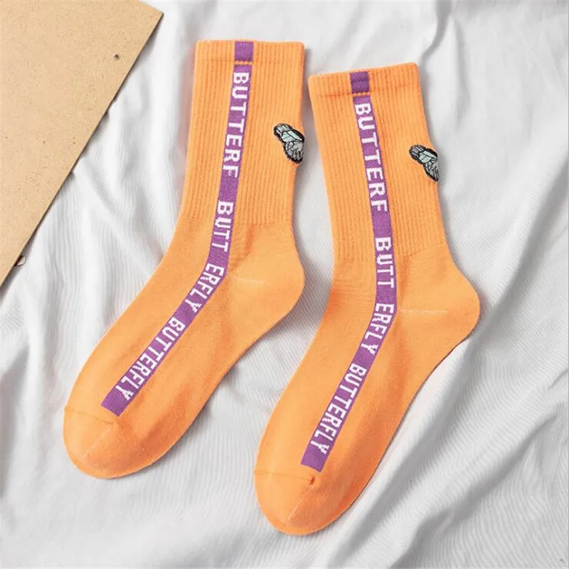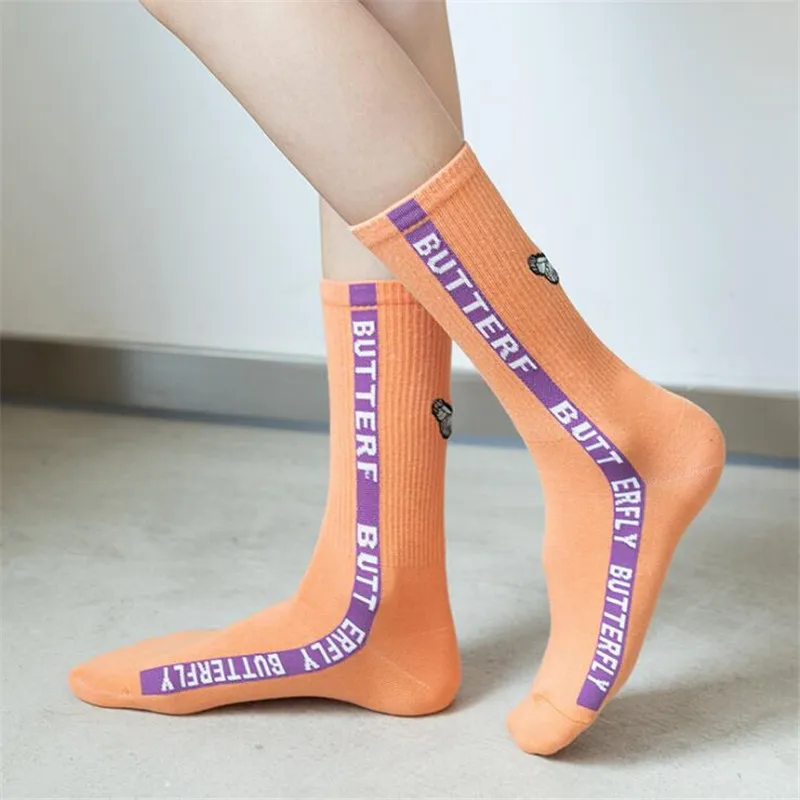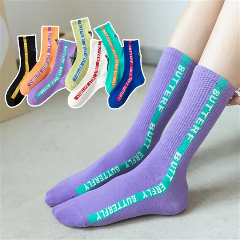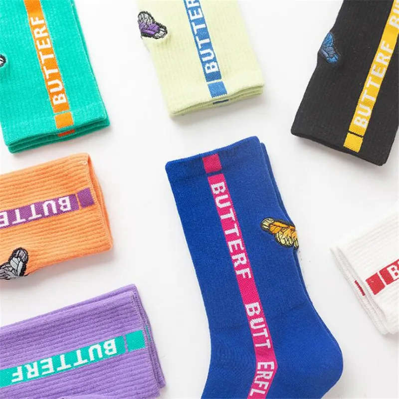 Модные эластичные женские короткие носки с бабочками, новые модные хлопковые цветные женские носки для девочек, модные носки для скейтборда, уличная одежда
