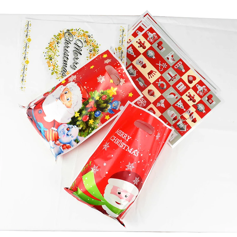 Пакет для рождественских подарков, 20 шт.лот, 16,4*25 см, пластиковый пакет для конфет с дедом морозом, подарочная упаковка, мешок для подарков, для новогоднего Рождественского украшения