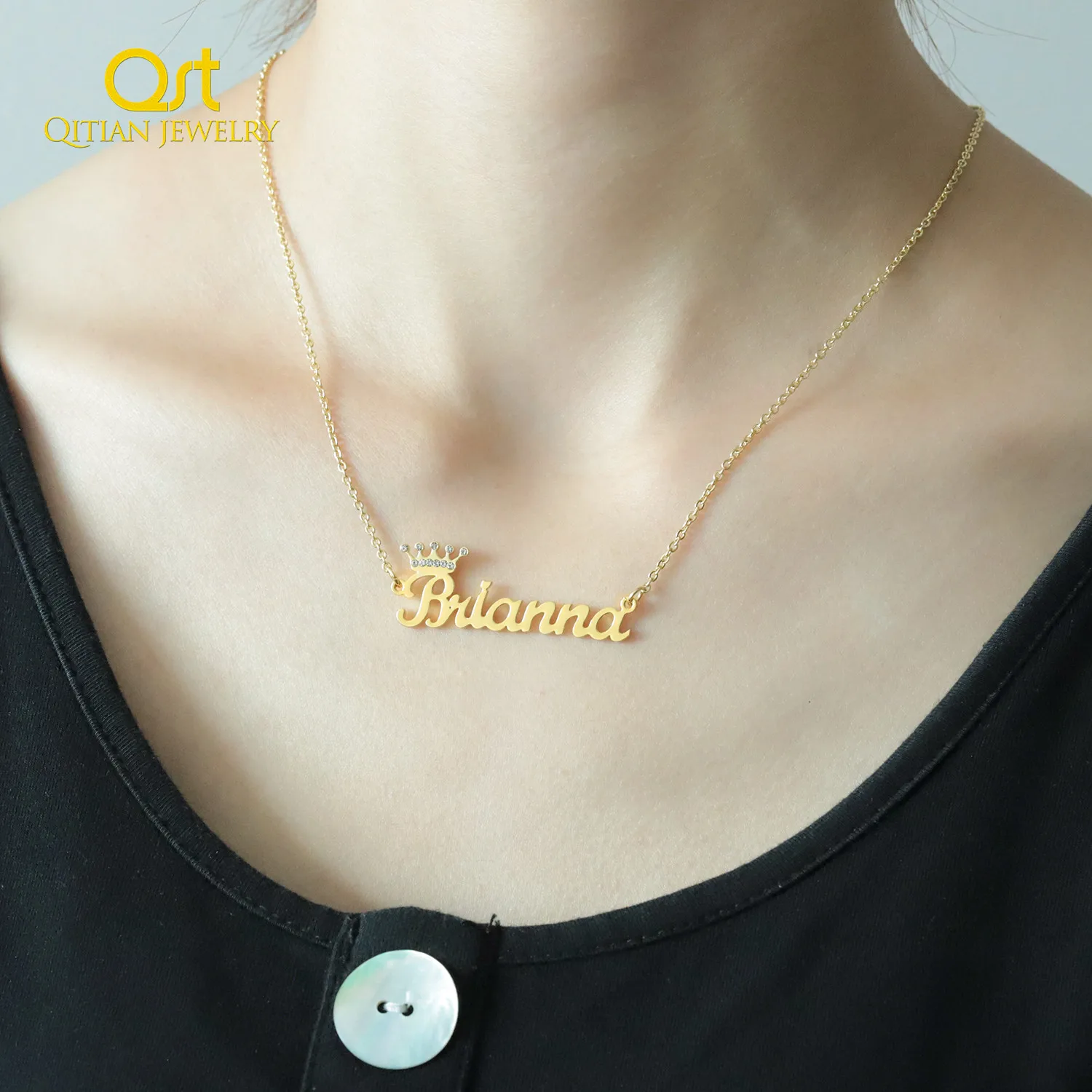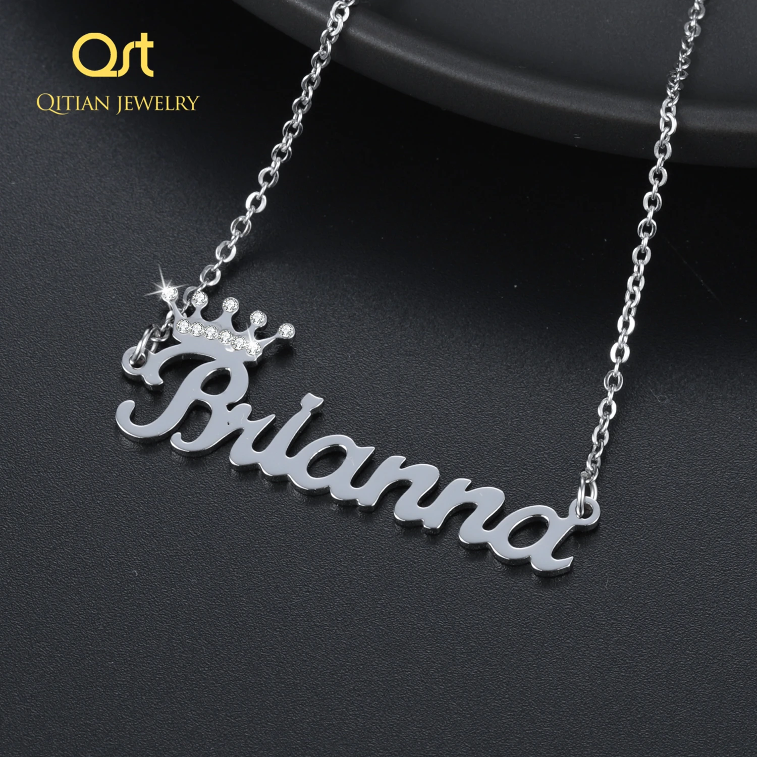 Персонализированные Индивидуальные Корона имя ожерелье Корона Ледяной Кристалл Циркон Письмо кулон ожерелье женщин из нержавеющей стали подарок